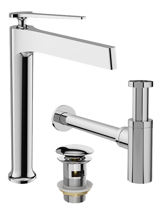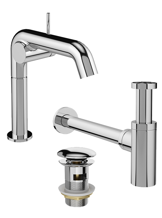 Комплект Смеситель STWORKI Лунд S25010CR + Сифон SD-001CR + Донный клапан SW-001CR
