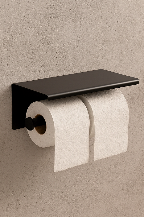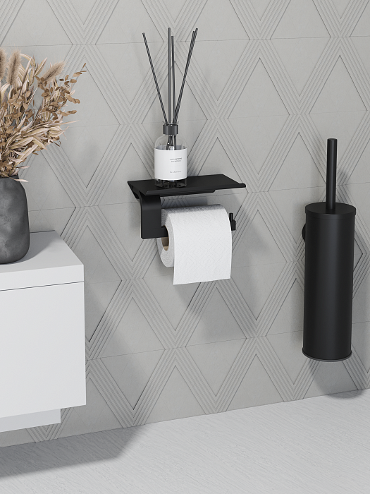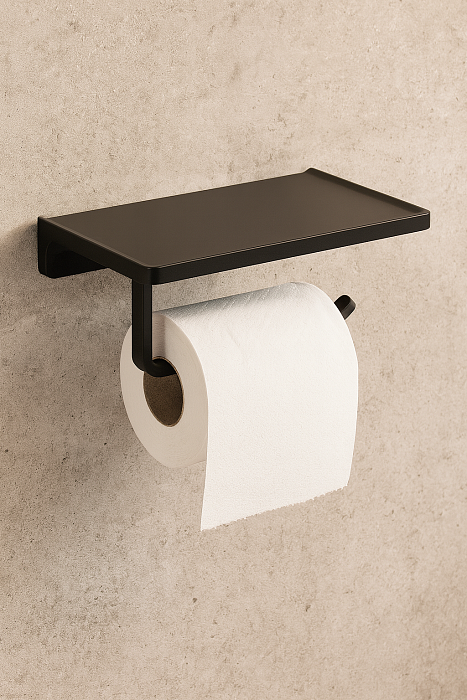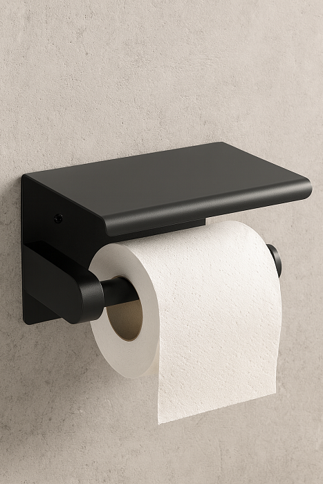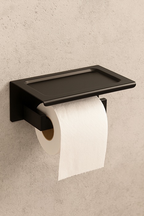 Держатель для туалетной бумаги STWORKI Вестфолл S08345BK с полкой для телефона, матовый черный