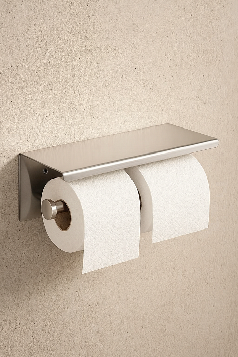 Держатель для туалетной бумаги STWORKI Хельсинки S33350CR с полкой для телефона, двойной, хром