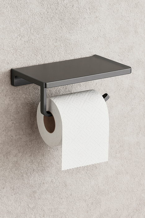 Держатель для туалетной бумаги STWORKI Хельсинки S33345GB с полкой для телефона, вороненая сталь
