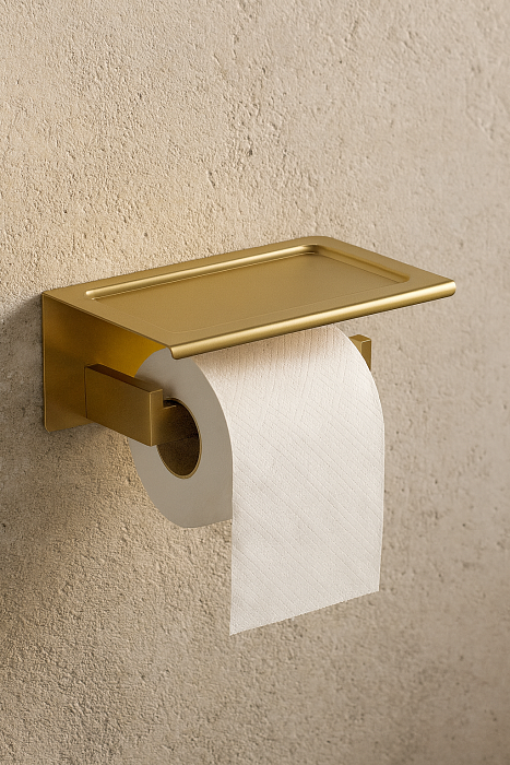 Держатель для туалетной бумаги STWORKI Вестфолл S08345GM с полкой для телефона, матовое золото