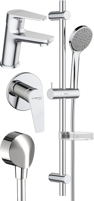 Комплект для ванной Смеситель STWORKI Лерум S04010CR хром + Стойка Хельсингборг S18180CR хром + Смеситель S04100CR хром