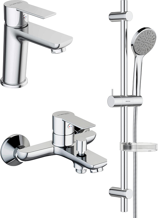 Комплект для ванной Смеситель STWORKI Лерум S04010CR хром + Стойка Хальмстад S15180CR хром + Смеситель S04100CR хром