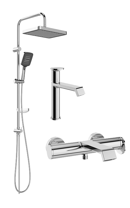 Комплект для ванной Смеситель STWORKI Лерум S04020CR + Стойка Вестерос S26180CR + Смеситель S04100CR