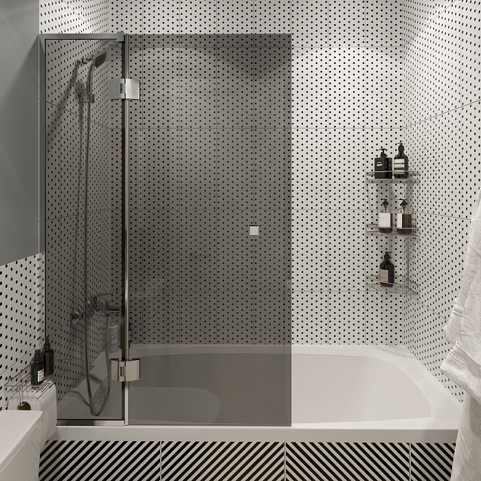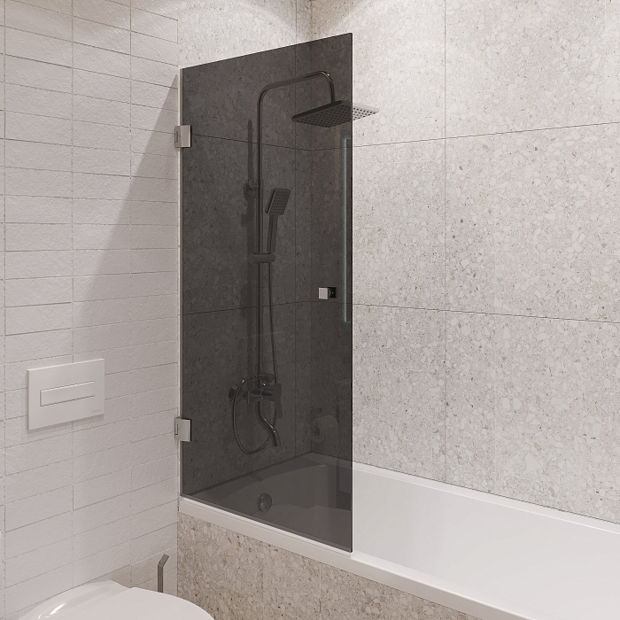 Шторка на ванну STWORKI Орхус распашная, 90, профиль хром глянцевый, тонированное стекло