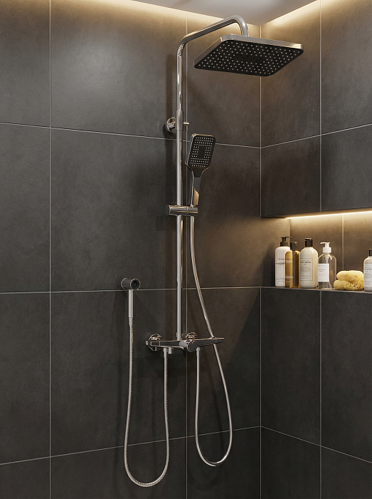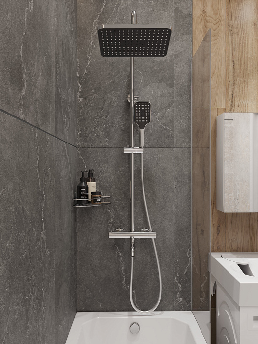 Душевая стойка - 1 шт. Верхний душ - 1 шт. Лейка - 1 шт. Шланг - 1 шт. Смеситель - 1 шт. Инструкция - 1 шт.