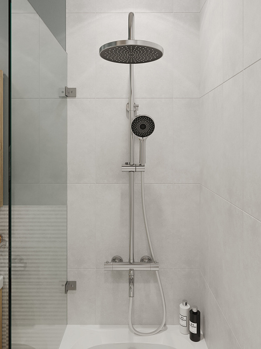 Душевая стойка - 1 шт. Верхний душ - 1 шт. Смеситель - 1 шт. Эксцентрик - 2 шт. Инструкция - 1 шт.
