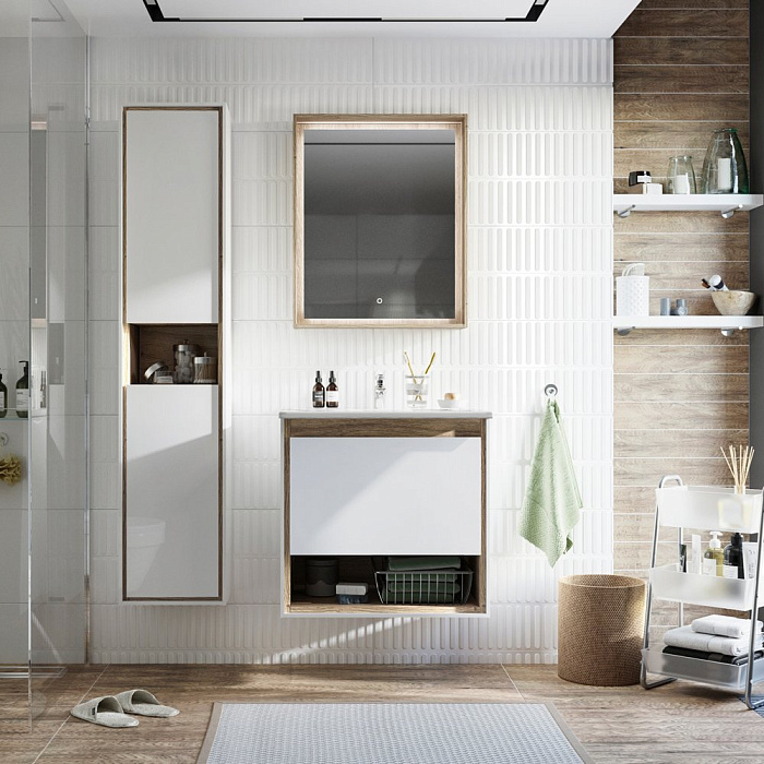 Мебель для ванной комнаты STWORKI Ольтен 60 белая, дуб сонома , подвесная (комплект, гарнитур)