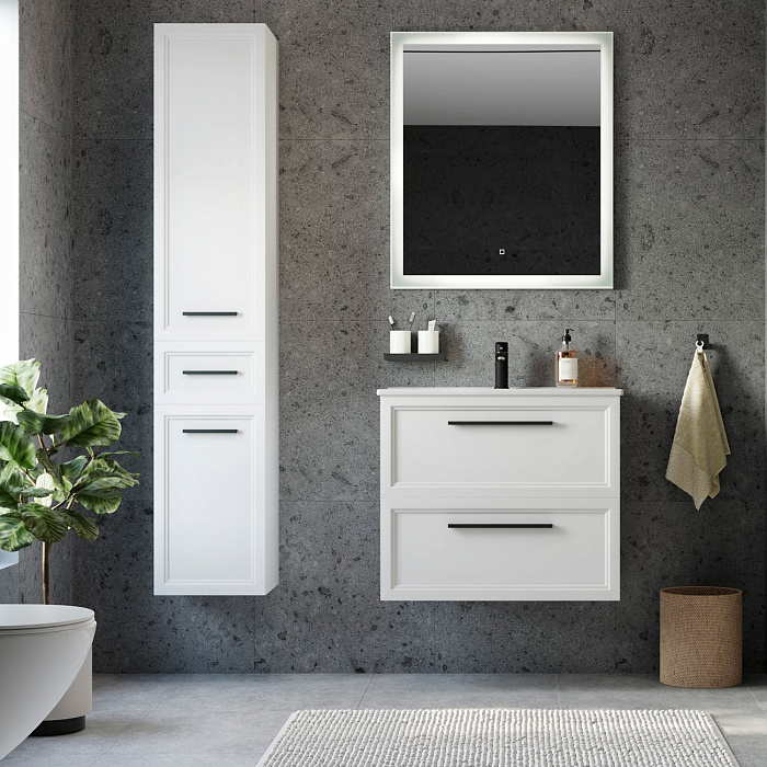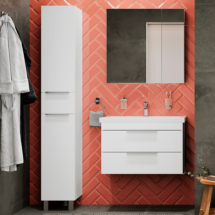Мебель для ванной комнаты STWORKI Хельсинки 80 белая, подвесная, в современном стиле, российская (гарнитур, комплект)