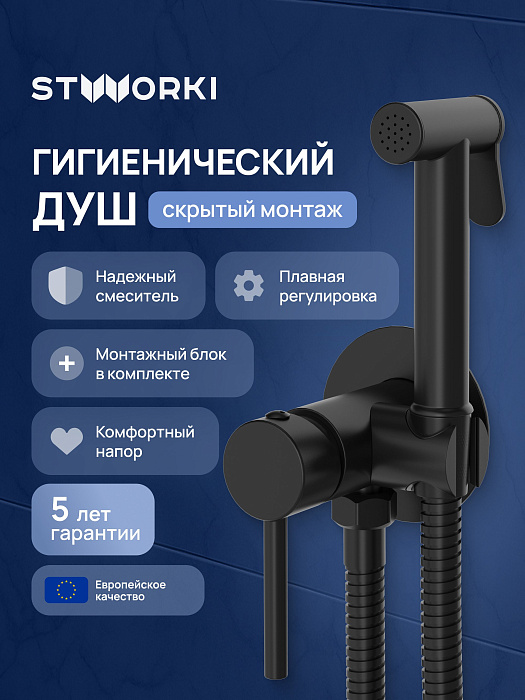Гигиенический душ STWORKI Карлстад S35151BK со смесителем, С ВНУТРЕННЕЙ ЧАСТЬЮ, матовый черный