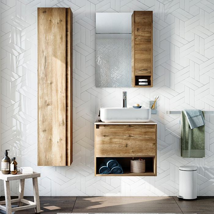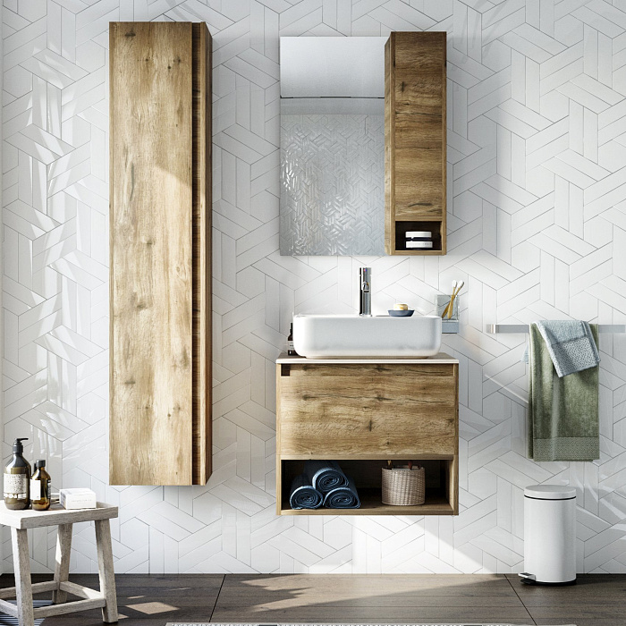Мебель для ванной комнаты STWORKI Карлстад 60 дуб рустикальный, в стиле лофт, под дерево, подвесная (гарнитур, комплект)