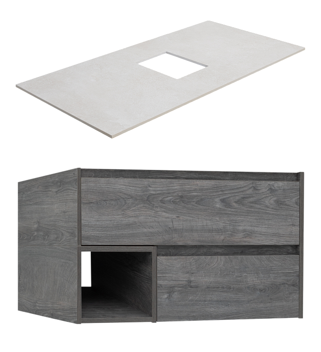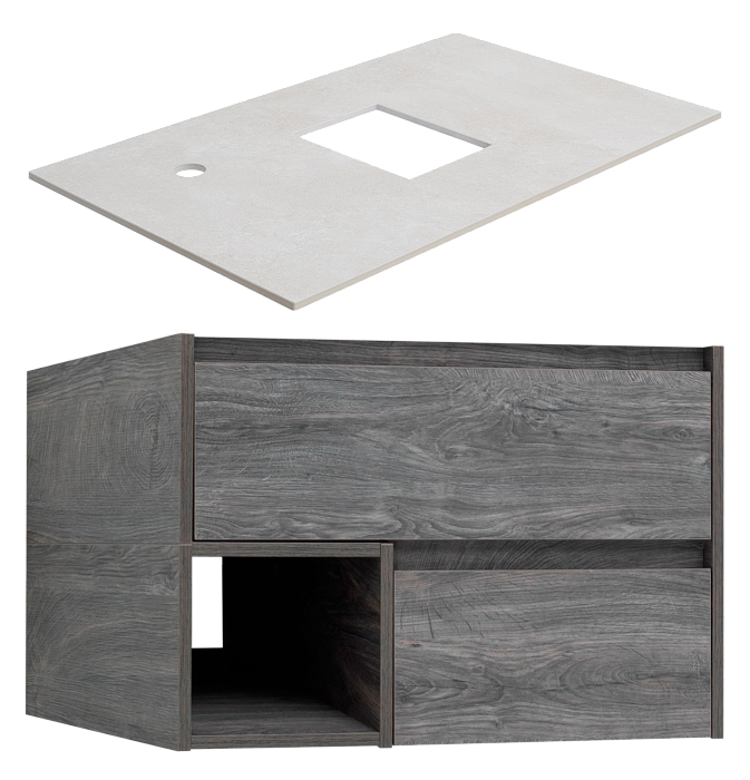 Мебель для ванной комнаты STWORKI Карлстад 90 дуб рустикальный, простоун беж, с отверстием для смесителя в столешнице