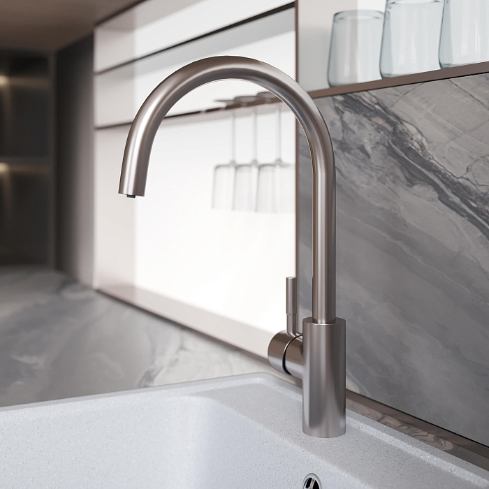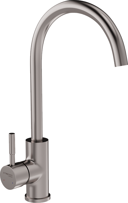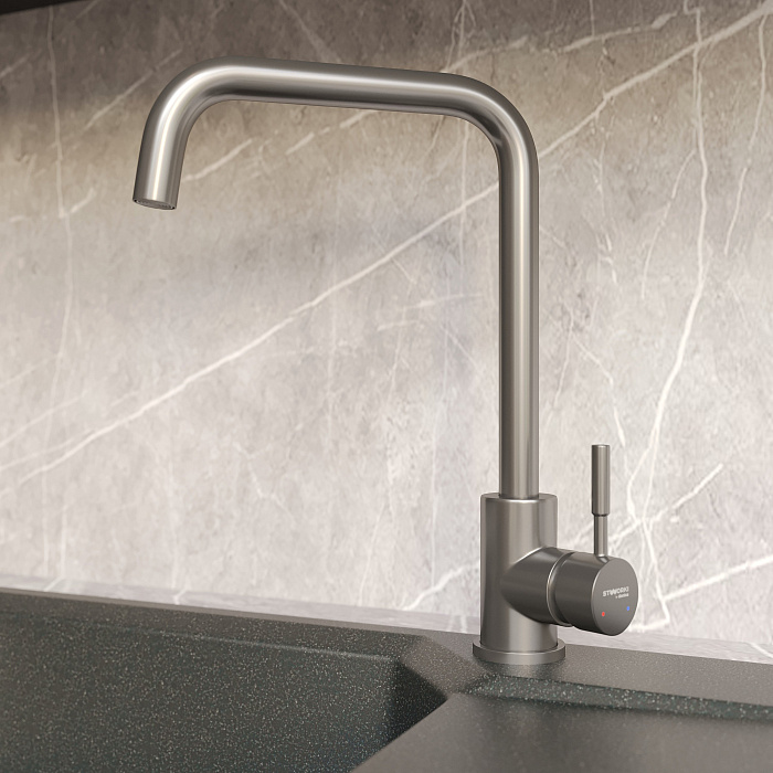 Смеситель для кухни STWORKI HSTW07100 никель, однорычажный, с поворотным изливом, с аэратором, матовый