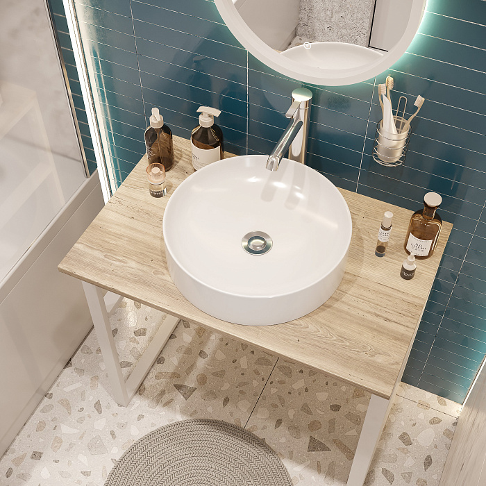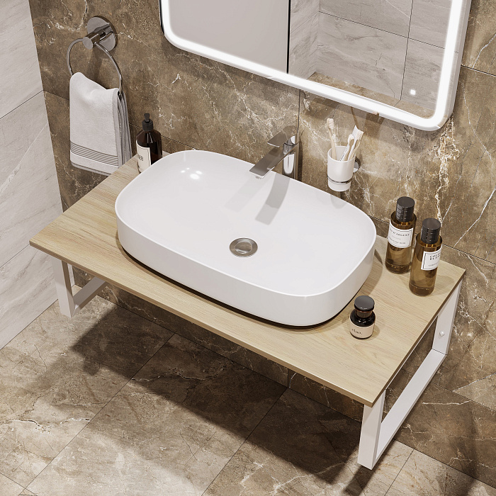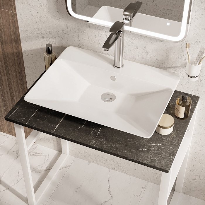 Мебельная раковина STWORKI Ши 81 накладная, белая, прямоугольная, фаянс