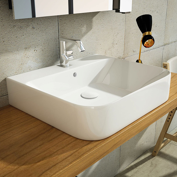 Мебельная раковина STWORKI Вестервик 61 накладная, белая, прямоугольная, фаянс