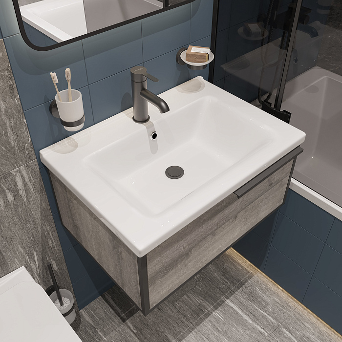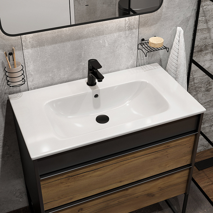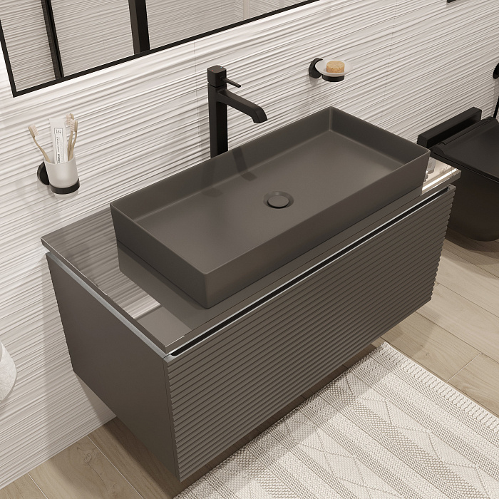 Мебельная раковина STWORKI Ши 81 накладная, антрацит, прямоугольная, фаянс