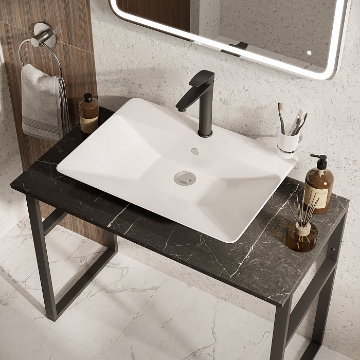 Мебельная раковина STWORKI Хедмарк K0201-0605 60 накладная, белая, прямоугольная, фаянс