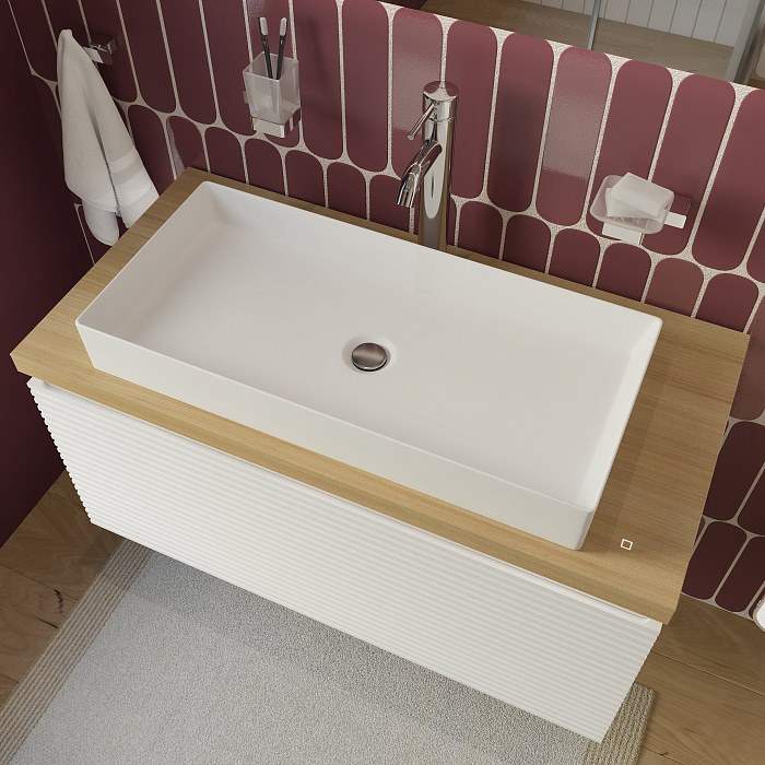 Мебельная раковина STWORKI Молде 95 накладная, белая, прямоугольная, фаянс
