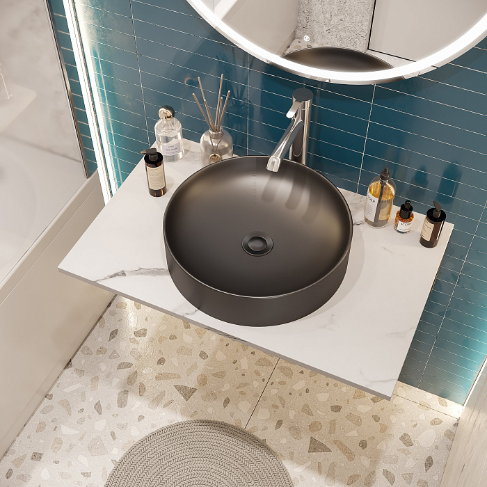 Накладная раковина STWORKI 3043-110 43 черная, круглая, фаянс