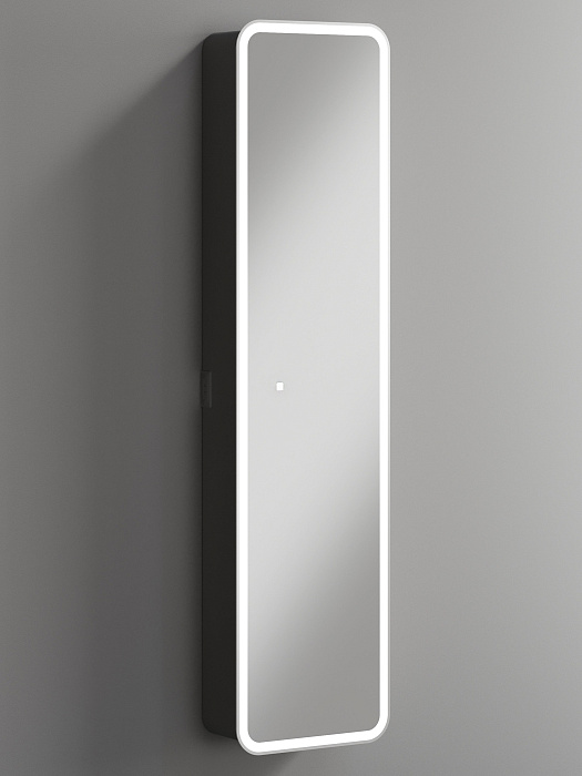 Шкаф-пенал для ванной с зеркалом STWORKI Ольборг МВК181 40 с подсветкой, антрацит