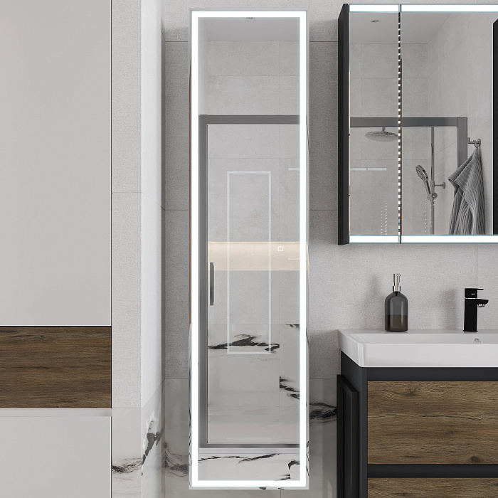 Шкаф-пенал для ванной с зеркалом STWORKI Кронборг МВК077 40 с подсветкой, черный