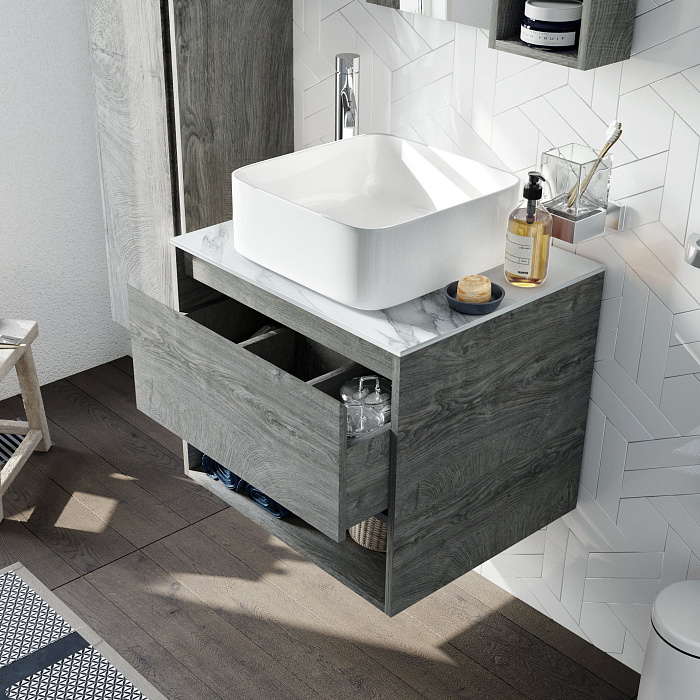 Столешница под раковину в ванную STWORKI Ольборг 60 без отверстий, дуб карпентер