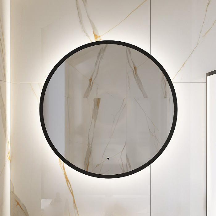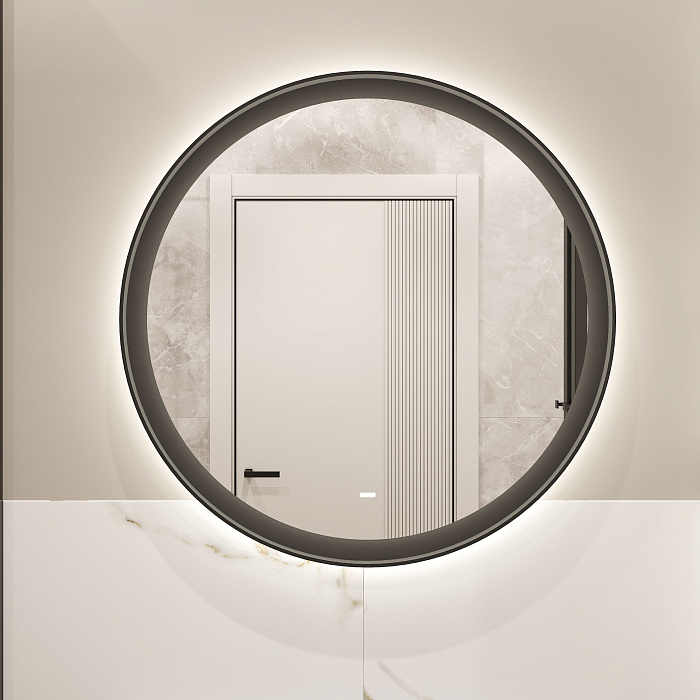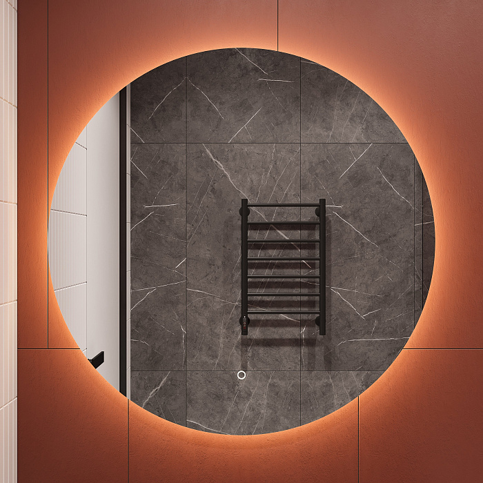 Зеркало круглое STWORKI Бурос 80, 3 цвета подсветки, с подогревом, матовое черное
