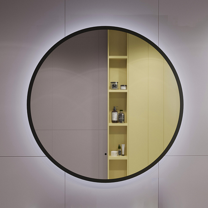 Зеркало круглое STWORKI Мосс 100 черное, с подсветкой