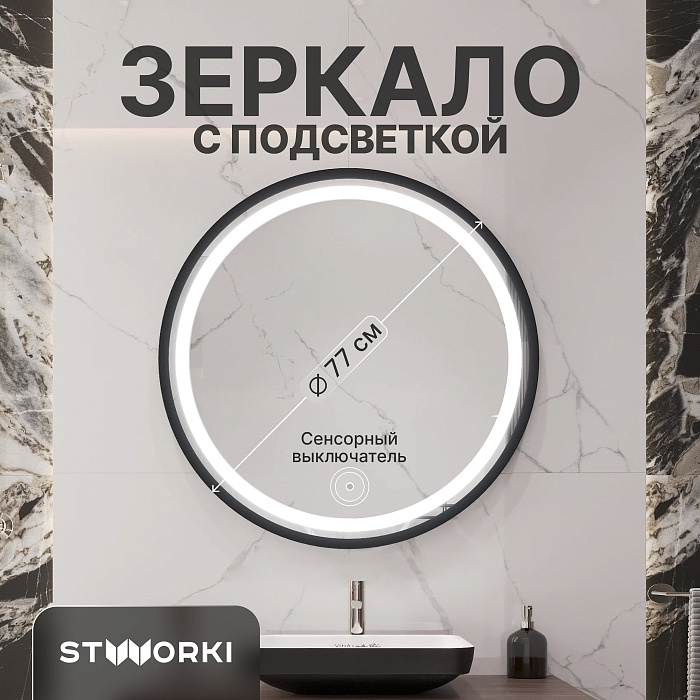 Зеркало круглое STWORKI Ноттвиль 80 с подсветкой, сенсор на зеркале, круглое, настенное, российское