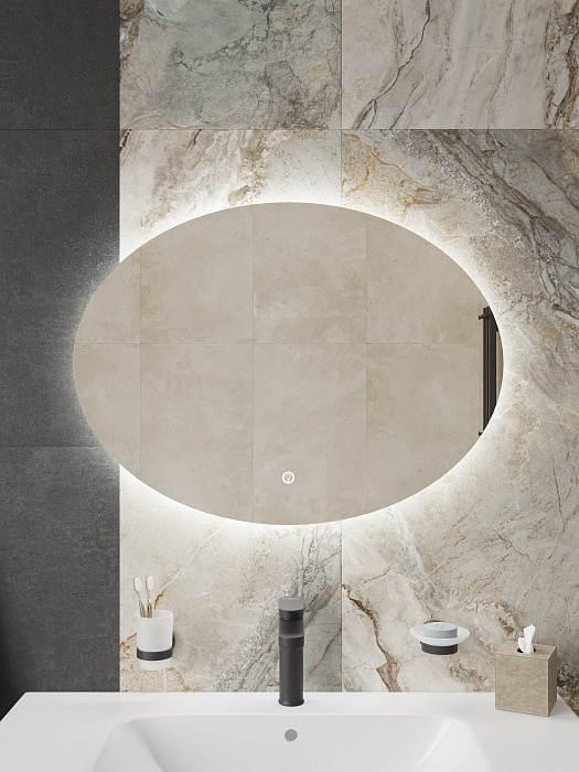 Зеркало STWORKI Мальмё 100 с подсветкой, сенсор на зеркале, овальное