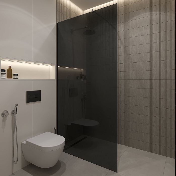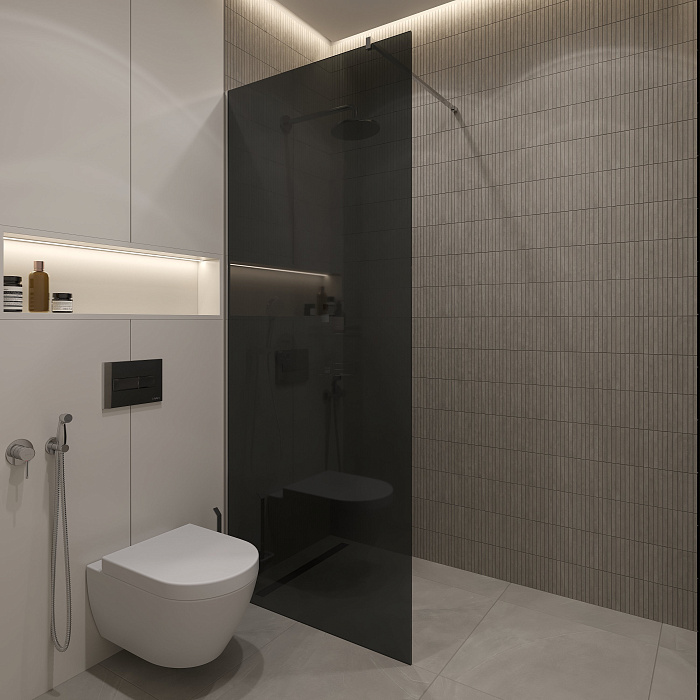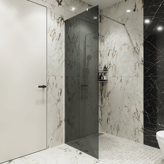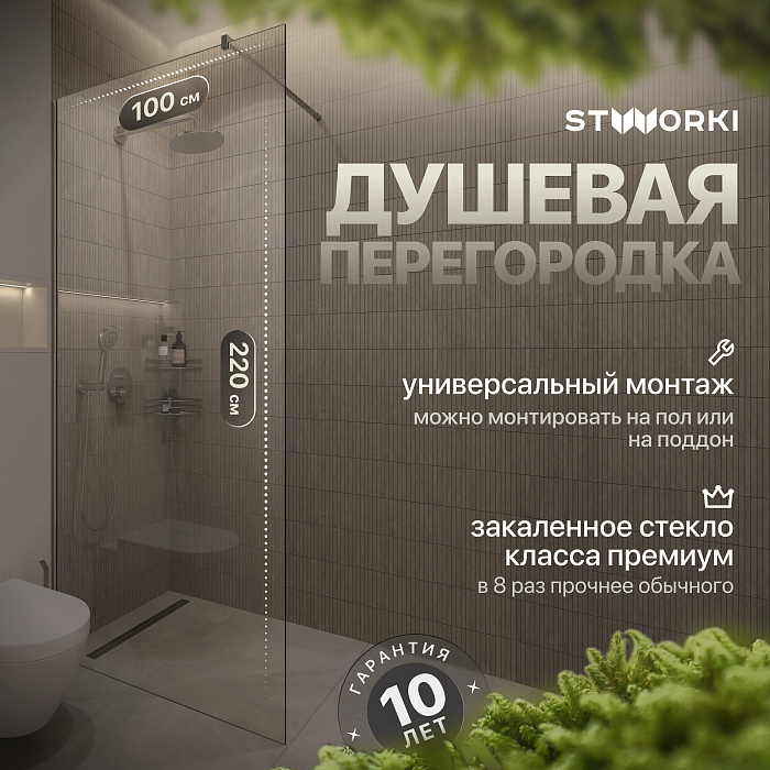 Душевая перегородка STWORKI Берген 120 см, профиль хром глянцевый, тонированное стекло