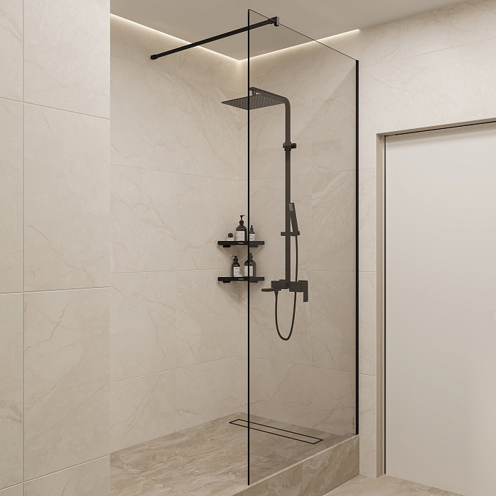 Душевая перегородка STWORKI Берген 120 см, профиль черный матовый, прозрачное стекло