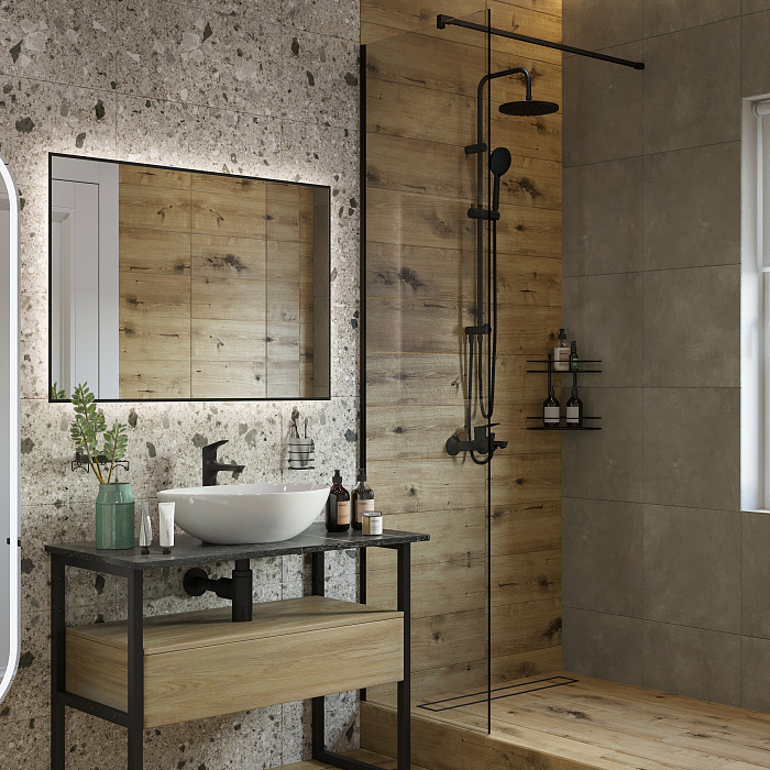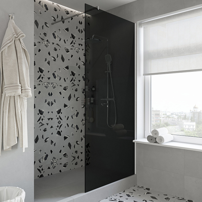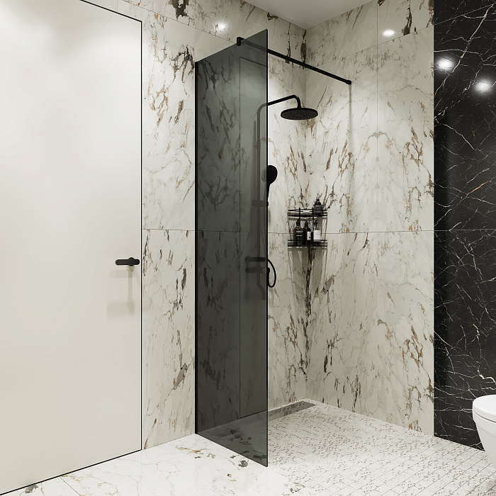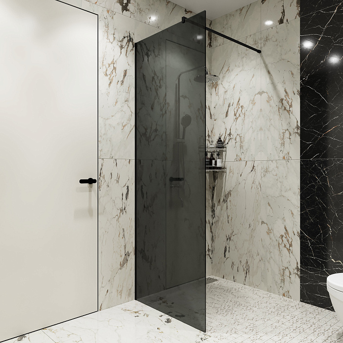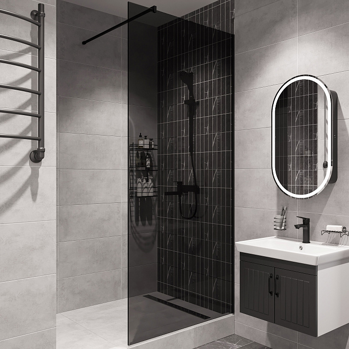 Душевая перегородка STWORKI Берген 120 см, профиль черный матовый, тонированое стекло