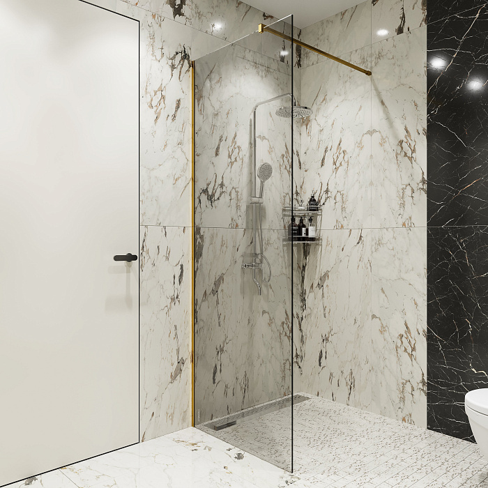 Душевая перегородка STWORKI Берген 90 см, профиль золото, прозрачное стекло