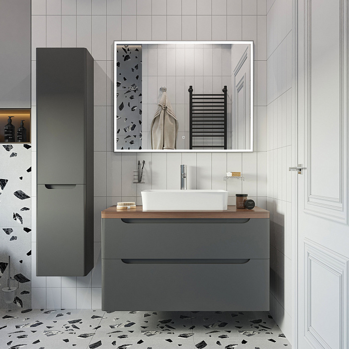 Тумба для комплекта - 1 шт. Комплект доводчиков - 1 шт. Столешница - 1 шт. Раковина - 1 шт. Донный клапан - 1 шт. Сифон - 1 шт. Решетка - 1 шт. Зеркало - 1 шт.