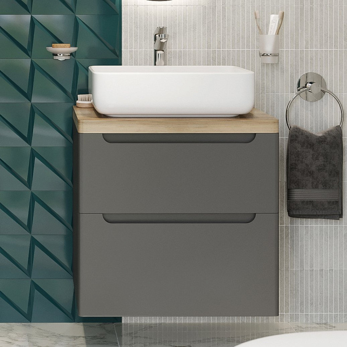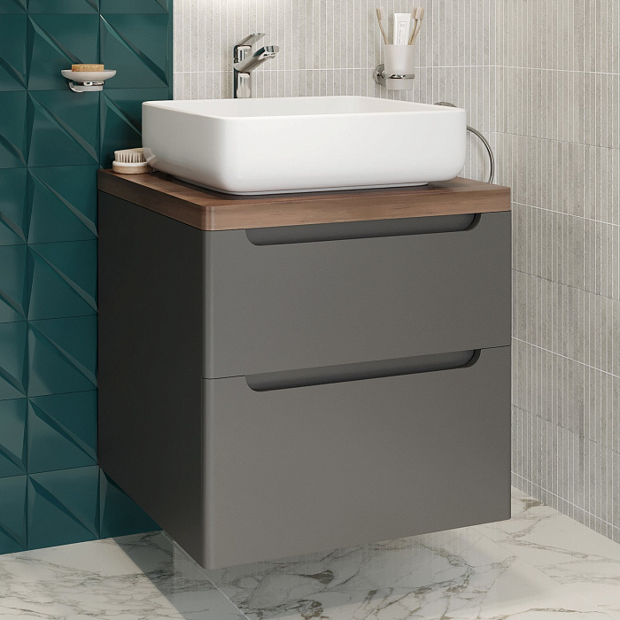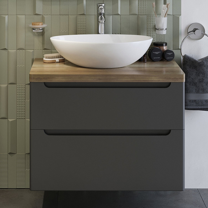 Тумба под раковину со столешницей STWORKI Берген 80 серая, столешница темная