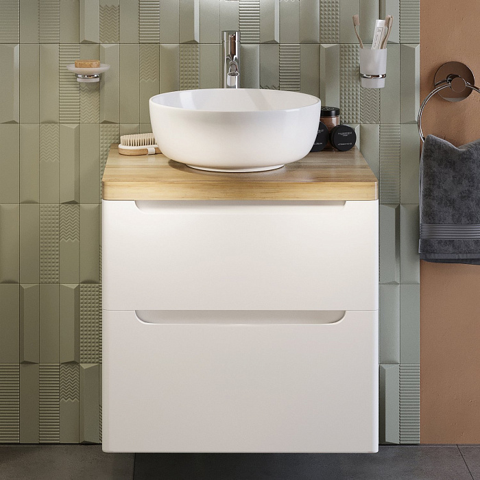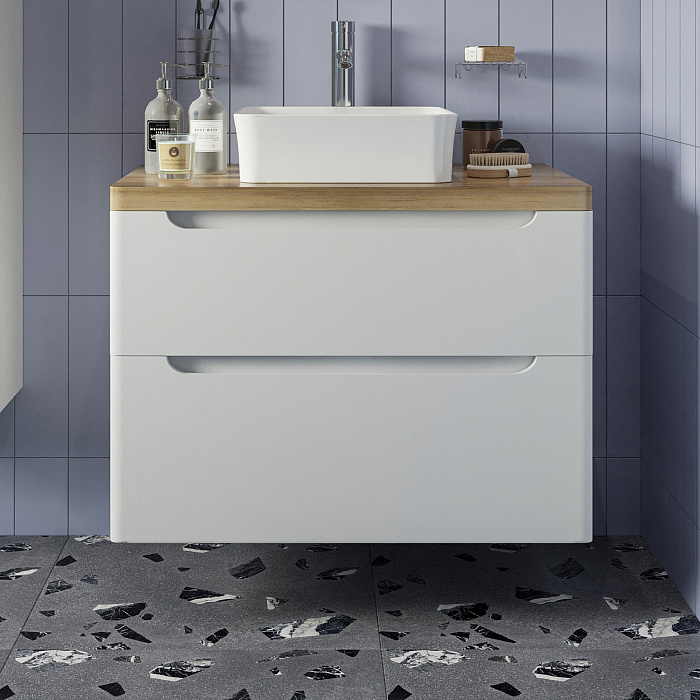 Тумба под раковину со столешницей STWORKI Берген 80 серая, столешница светлая