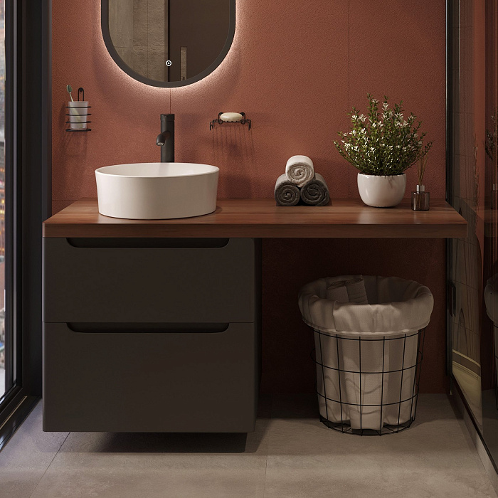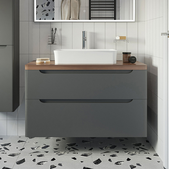 Тумба под раковину со столешницей STWORKI Берген 100 серая, столешница темная