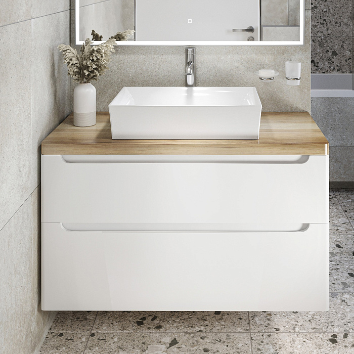 Тумба под раковину со столешницей STWORKI Берген 100 серая, столешница светлая