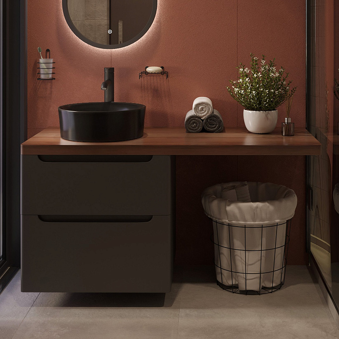 Тумба с раковиной STWORKI Берген 60 белая с темной столешницей 122, Moon 1, R