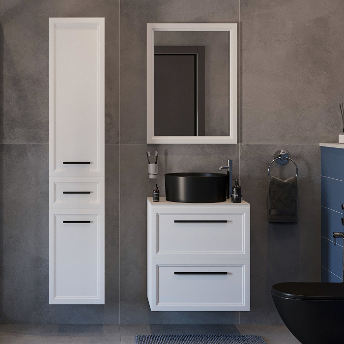 Тумба для комплекта - 1 шт. Комплект доводчиков - 1 шт. Столешница - 1 шт. Раковина - 1 шт. Сифон - 1 шт. Решетка - 1 шт. Зеркало - 1 шт.
