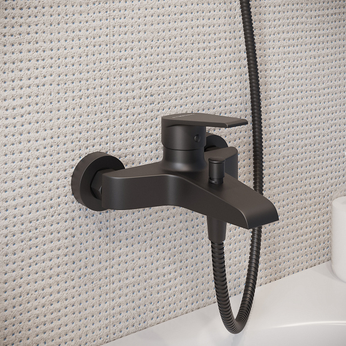 Смеситель для ванны с душем STWORKI Эстфолл S44100BK + Душевой гарнитур Ольборг S20190BK, матовый черный