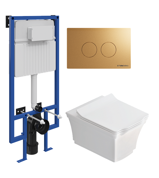 Комплект 3 в 1 Унитаз подвесной STWORKI Хадстен SETK3304-0616-001-1-6000 + Инсталляция 510162 + Кнопка Хельсинки 500474 цвет матовое золото