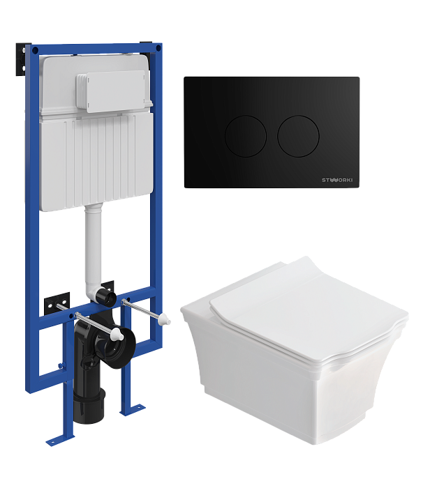 Комплект 3 в 1 Унитаз подвесной STWORKI Хадстен SETK3304-0616-001-1-6000 + Инсталляция 510162 + Кнопка 230858 цвет матовый черный