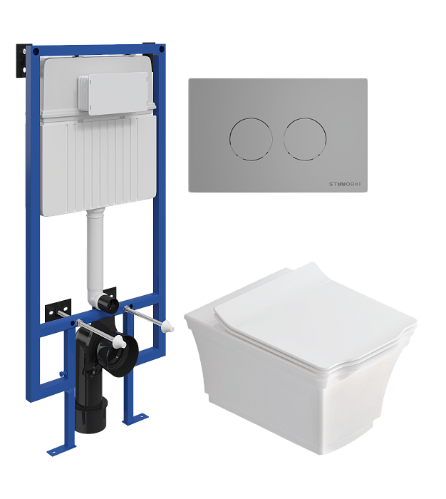 Комплект 3 в 1 Унитаз подвесной STWORKI Хадстен SETK3304-0616-001-1-6000 + Инсталляция 510162 + Кнопка 230823 цвет матовый хром