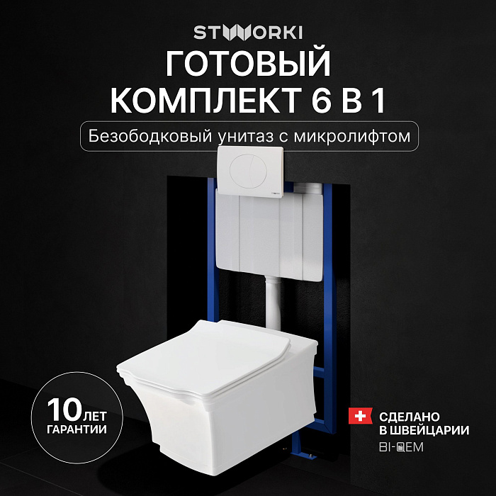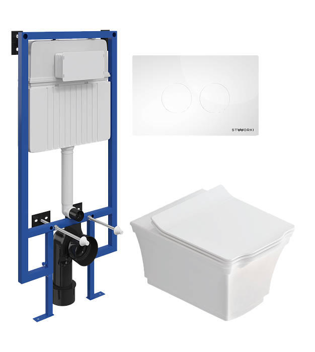 Комплект 3 в 1 Унитаз подвесной STWORKI Хадстен SETK3304-0616-001-1-6000 + Инсталляция 510162 + Кнопка Хельсинки 500470 цвет глянцевый белый