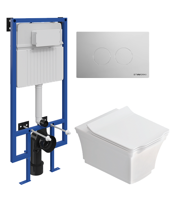 Комплект 3 в 1 Унитаз подвесной STWORKI Хадстен SETK3304-0616-001-1-6000 + Инсталляция 510162 + Кнопка 230822 цвет глянцевый хром