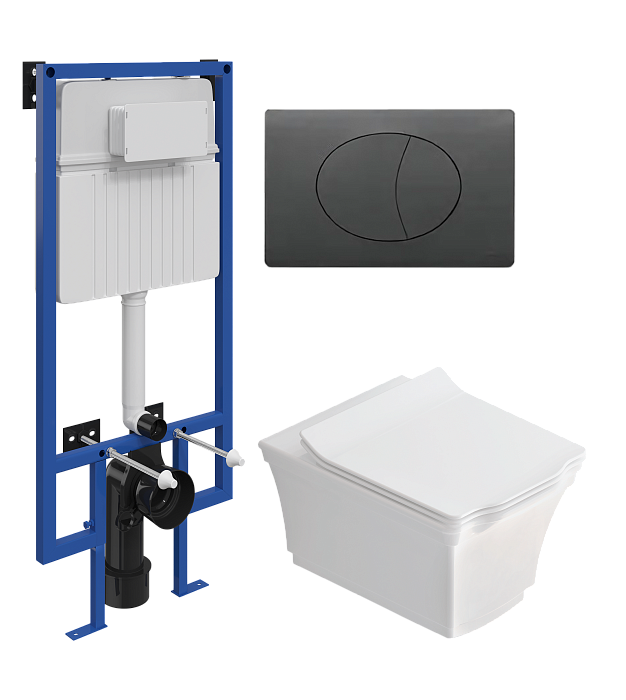 Чаша унитаза - 1 шт. Крышка-сиденье - 1 шт. Система инсталляции - 1 шт. Комплект креплений - 1 шт. Панель шумоизоляционная - 1 шт. Кнопка смыва - 1 шт.