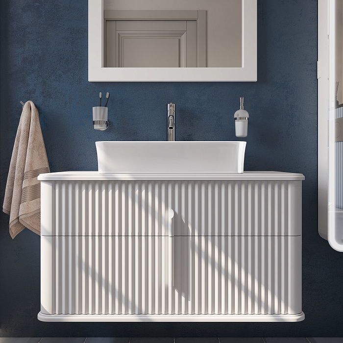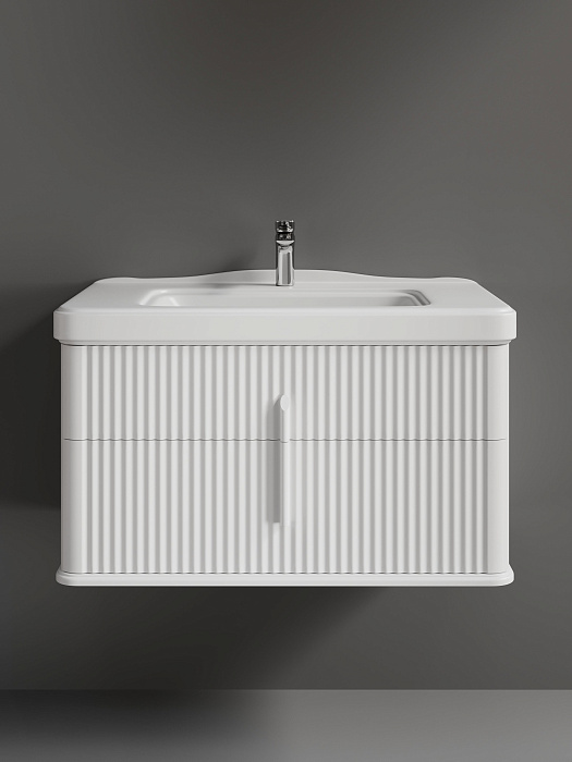 Тумба для комплекта - 1 шт. Комплект доводчиков - 1 шт. Столешница - 1 шт. Раковина - 1 шт. Сифон - 1 шт. Решетка - 1 шт. Смеситель - 1 шт. Комплект подводки - 1 шт.