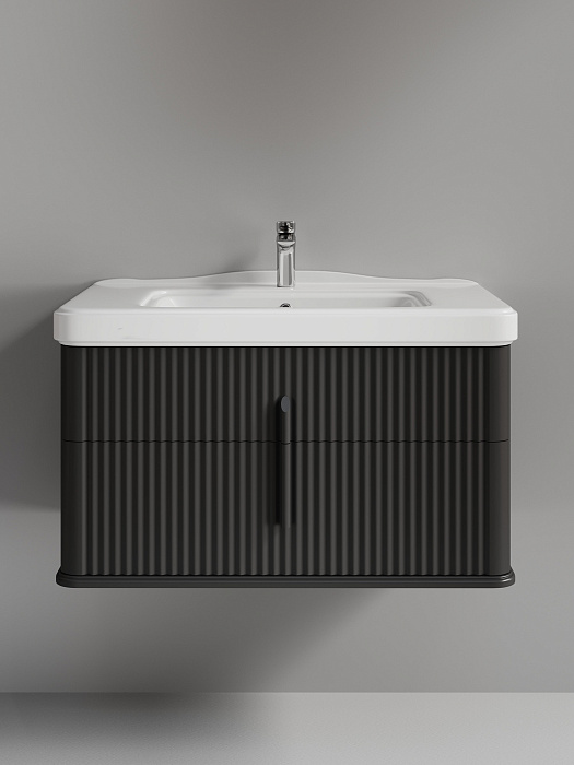 Тумба с раковиной STWORKI Молде 95 антрацит, столешница Молде 95, раковина Молде 3064-110, смеситель S23020BK